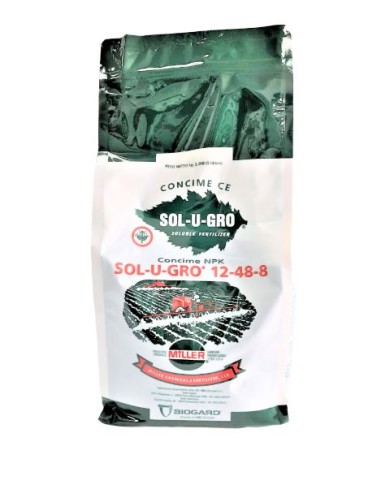 Sol-U-Gro® 12-48-8 con elementi minori è un fertilizzante ad alto contenuto di fosfati e solubile in acqua, formulato per colture che richiedono un aumento del fosforo durante le fasi critiche di crescita. La sua miscela equilibrata di azoto, fosforo, potassio e micronutrienti chelati con EDTA favorisce un forte insediamento radicale, vigore precoce della pianta e una migliore formazione di gemme e fiori.
